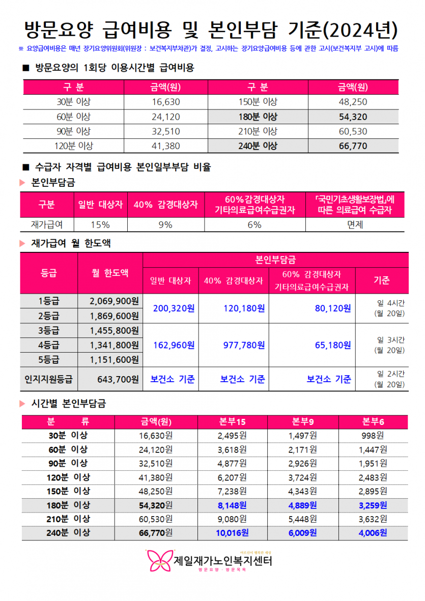 2024년 노인장기요양보험 수가와 본인부담금 알아보기